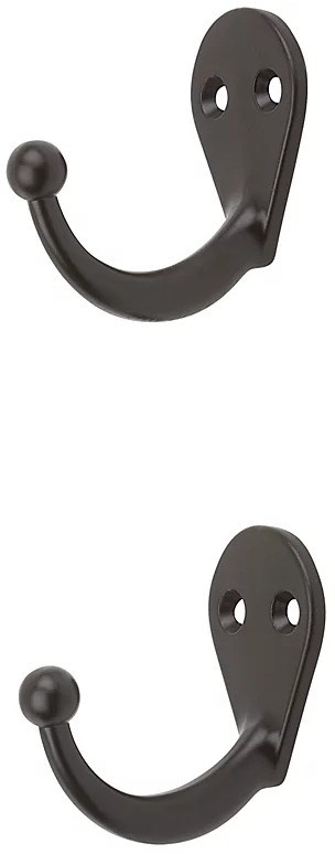 Coat & Hat Hook ~ Oil Rub'd Bronze w/Screws, 2 pak