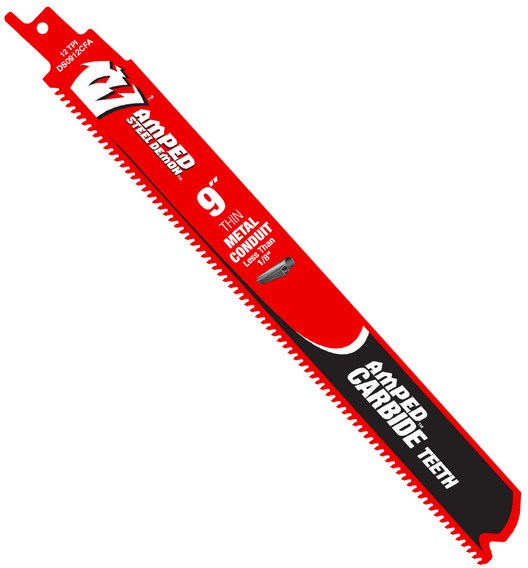 DIABLO AMPED STEEL DEMON 9" 12 TPI CARBIDE RECIPROCATING SAW BLADEDiablo's AMPED Steel Demon carbide-tipped reciprocating saw blade delivers up to 100X longer life than standard bi-metal blades in thin metal applications under 1/8" thick, including conduit and tubing. Black I.C.E. industrial coating and Diablo's Hi-Performance Carbide combine for up to 2X increased performance over standard carbide recip blades.