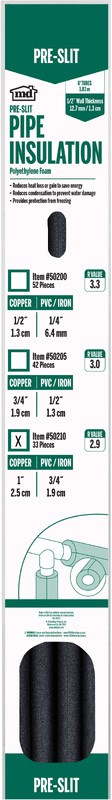 M-D PRE-SLIT FOAM PIPE INSULATION - 1-1/8" x 6 FTM-D Building Products pre-slit foam tube insulation reduces heat loss through hot water pipes by up to 80% and prevents condensation on cold water lines. The pre-slit design slips easily over existing pipes for quick installation without tools or disconnecting plumbing.