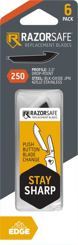 OUTDOOR EDGE 2-1/2" RAZORSAFE DROP POINT BLADES - 6PK