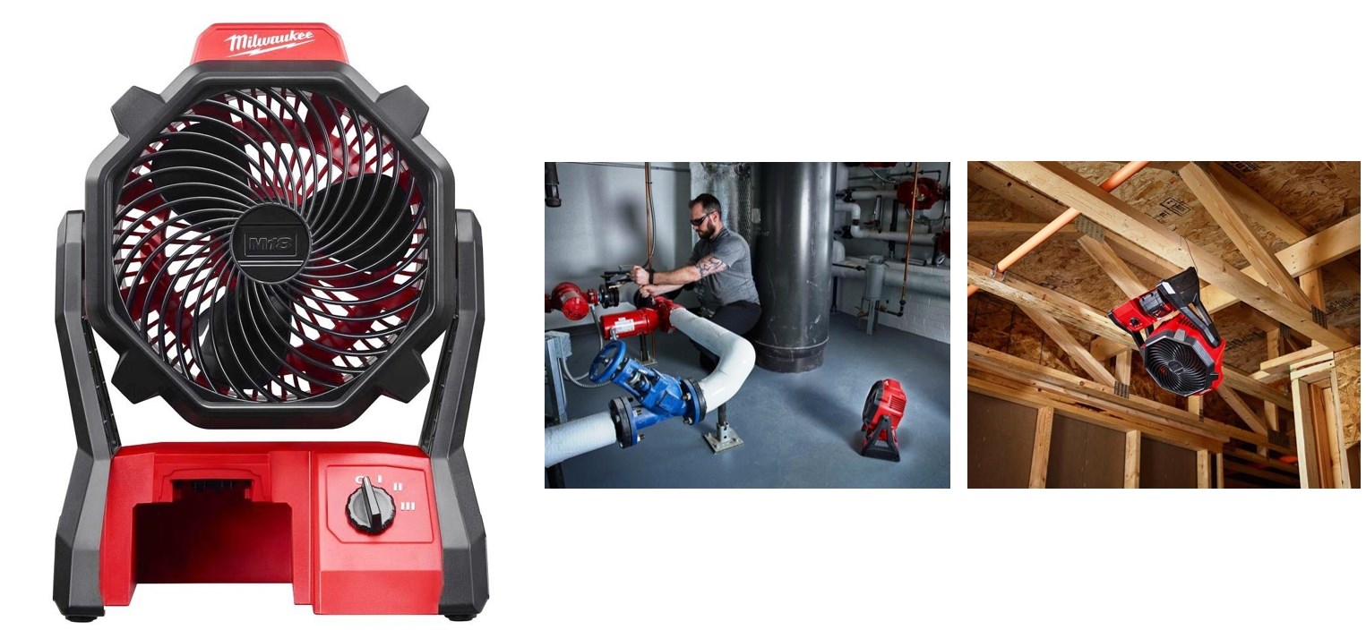 The M18 Jobsite Fan provides the most powerful airflow, and unmatched run-time in a compact size. The 0886-20 can circulate air over 40 ft. making it ideal for drying or cooling on a variety of jobsites.