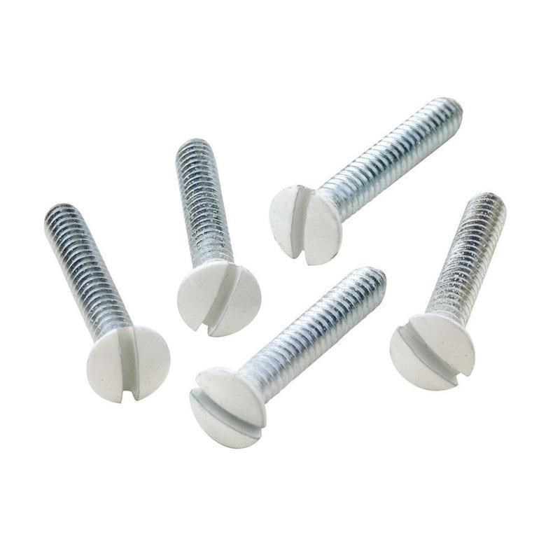 Leviton's replacement screw, expertly designed for wallplates and featuring an oval head milled slot.