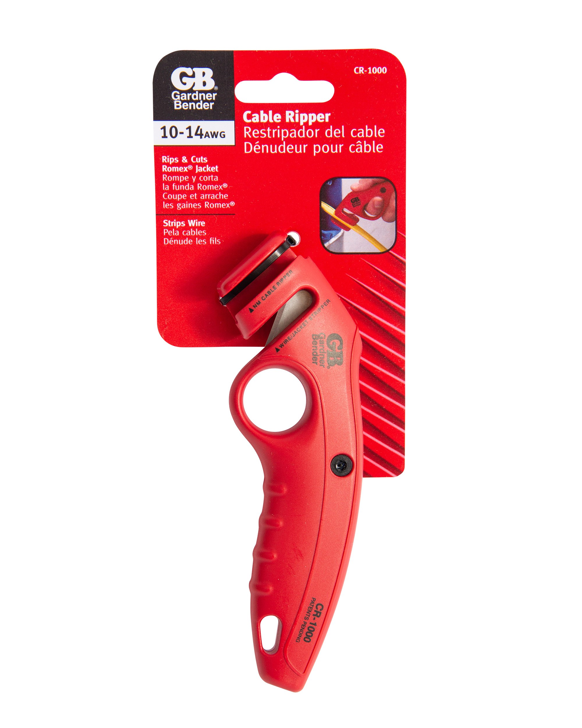 GARDNER BENDER NM CABLE RIPPERQuickly and cleanly rip open the outer jacket of non-metallic (NM/Romex) sheathed cable with this compact Gardner Bender cable ripper. The nickel-plated body resists corrosion, and wire gauge markings etched into the handle provide a quick reference for stripping #6 through #14 AWG wire.