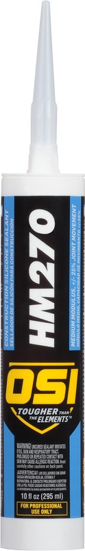 OSI HM-270 100% SILICONE SEALANT - CLEARProfessional-grade 100% silicone rubber sealant ideal for construction glazing and general sealing applications. This medium modulus, one-part RTV silicone cures at room temperature upon exposure to moisture in the air, providing excellent adhesion and flexibility.