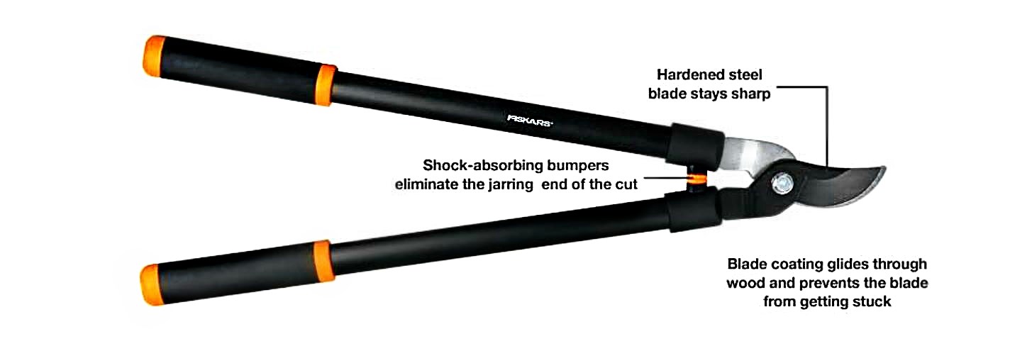 Choose Fiskars Bypass Lopper for smooth, easy cuts on tree branches, comfortable use and lasting value. A fully hardened, precision-ground blade stays sharp, and a low-friction coating helps it resist rust while making every cut even easier. Shock-absorbing bumpers eliminate the jarring conclusion at the end of cuts, and non-slip comfort grips make this lopper easier to grip, carry and maneuver when cutting at awkward angles. In addition, durable steel handles provide lasting strength through heavy use.