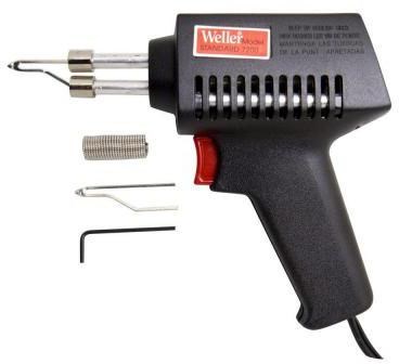 Weller Lightweight Solder Gun Kit has a single heat gun producing 75-Watt of heat. Kit contains 7200 soldering gun, coil of lead-free solder, 2 tips and an instruction leaflet.