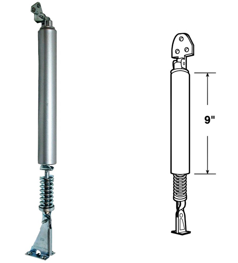Medium - Heavy Duty Pneumatic Storm Door Closer w/Shock Spring, Aluminum Finish ~ 9" Barrel