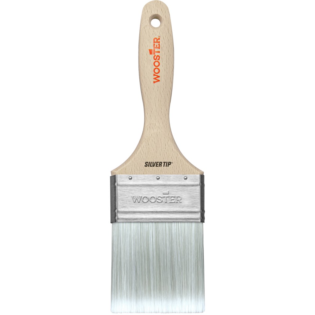 WOOSTER SILVER TIP VARNISH BRUSH - 3"The Wooster Silver Tip 5222 is a premium varnish brush featuring CT (Chemically Tipped) polyester filaments that virtually eliminate brush marks for a smooth, professional finish. Ideal for applying varnish, polyurethane, enamels, and fine water-based coatings on wood, metal, and trim.