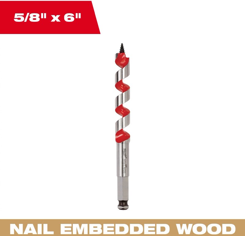 MILWAUKEE SPUR AUGER BIT - 5/8" x 6"This Milwaukee spur auger bit features double wing spurs that continuously scribe the hole perimeter, producing clean, smooth holes without breakout or tear-out. Designed for electricians, plumbers, and trades professionals who need fast, clean holes in wood framing.