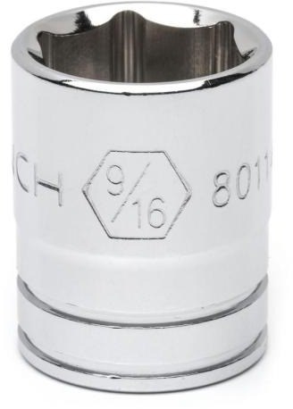 GEARWRENCH 1/4" DRIVE 6-POINT STANDARD SAE SOCKET - 9/16"This GearWrench 9/16" socket features a 6-point design that maximizes contact with hex fasteners for a secure grip. The off-corner loading design applies force to the flats of fasteners rather than the corners, reducing the risk of rounding damaged or worn bolts and nuts.