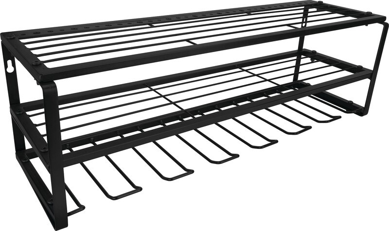 • 34 holes along back of top shelf