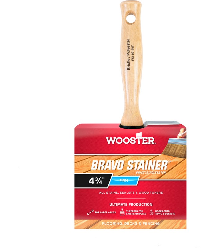Bravo Stainer Brush ~ Blend of soft white bristles and firm polyester. Excellent for all interior or interior stains, sealers and wood toners.