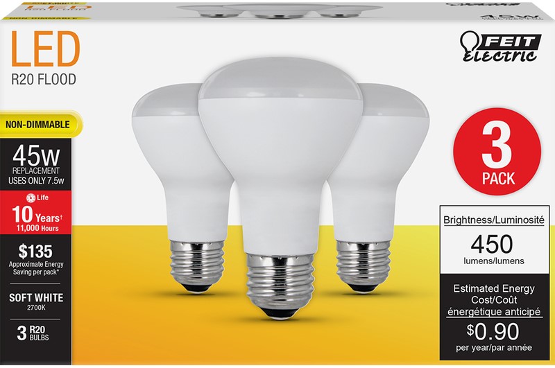 High powered 6.8 watt non-dimmable R20 bulb shape is direct replacement for 45 watt R20