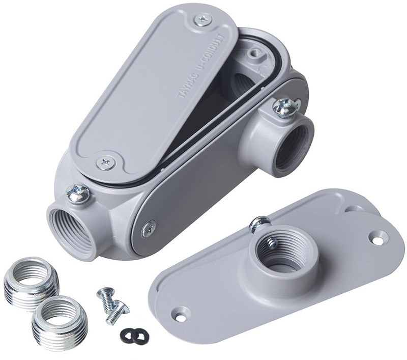 • TayMac conduit body with pre-affixed gasket and self-aligning covers / panels