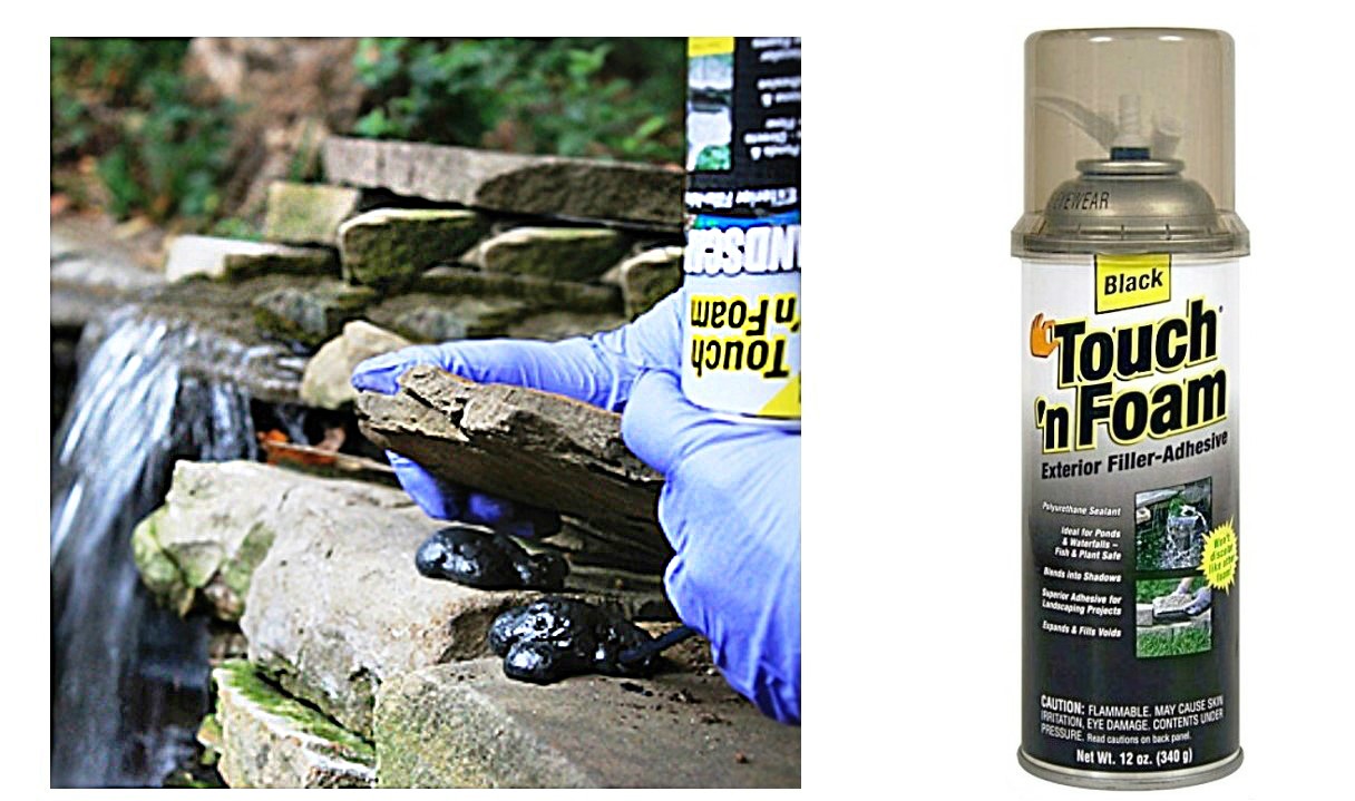 It bonds quickly to porous or non-porous rock, stone, cement, wood and cloth and is ideal for replacing loose mortar in rock walls. Touch 'n Foam Landscape can also be used to direct water flow in pond or waterfall applications and it's safe for use around fish or plants.