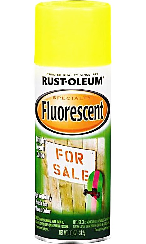 Fluorescent sprays provide bright, highly visible colors on a variety of surfaces. They are ideal for indoor and outdoor projects such as crafts, hobbies, stenciling, marking, and color coding. These paints also glow under ultraviolet (black) light. For best results, apply over a white base coat.
