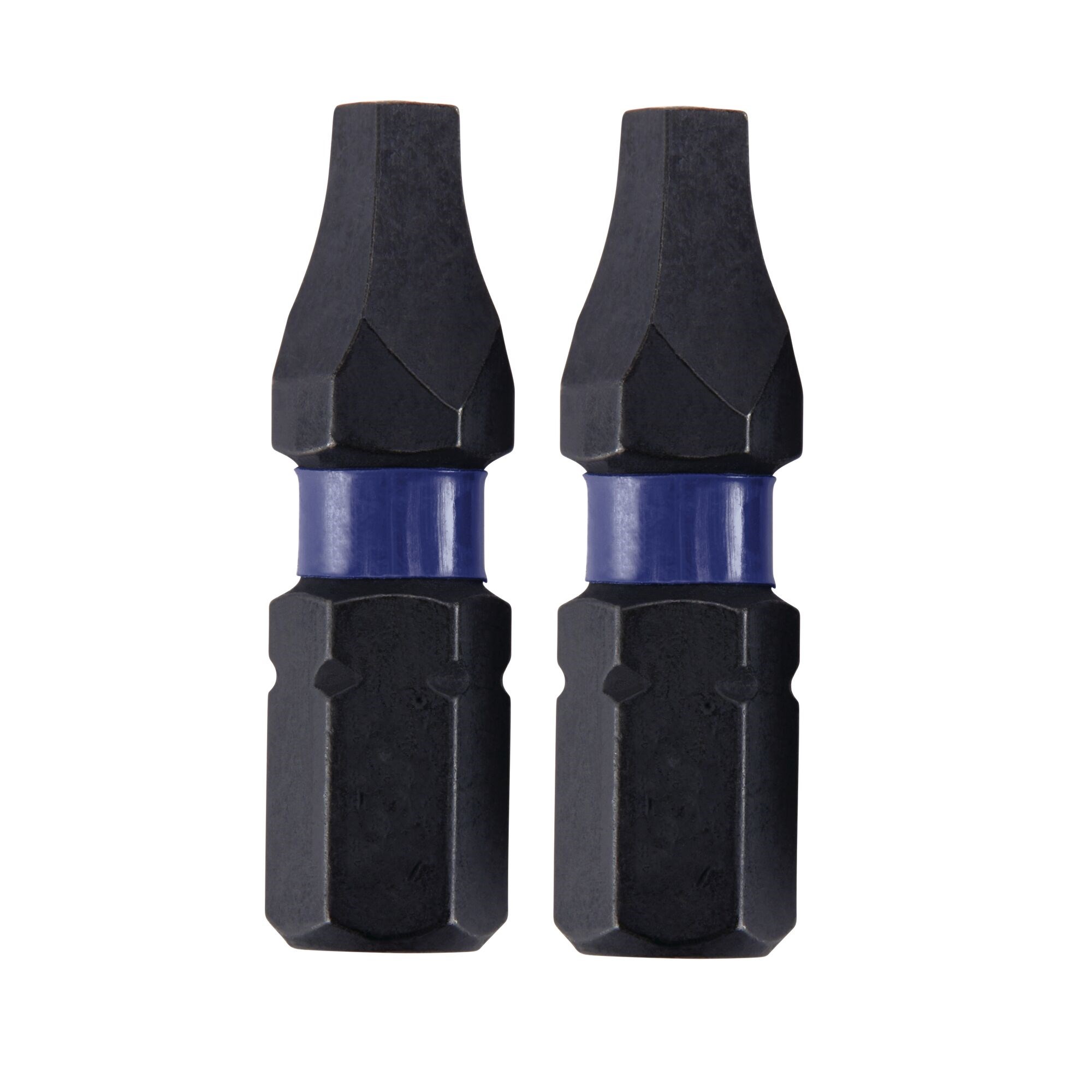IRWIN #2 SQUARE RECESS TORSION BIT - 1", 2 PACKImpact-rated square recess (Robertson) insert bit designed to withstand the high-torque output of impact drivers. Cold-forged S2 tool steel construction with black oxide finish for extended bit life.