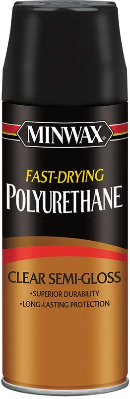 The Minwax 11.5 oz. Semi-Gloss Fast-Drying Polyurethane dries to a