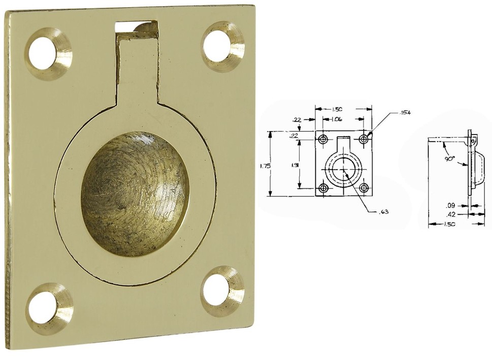 Flush Ring Pull, Polished Solid Brass ~ 1.75" x 1.50"