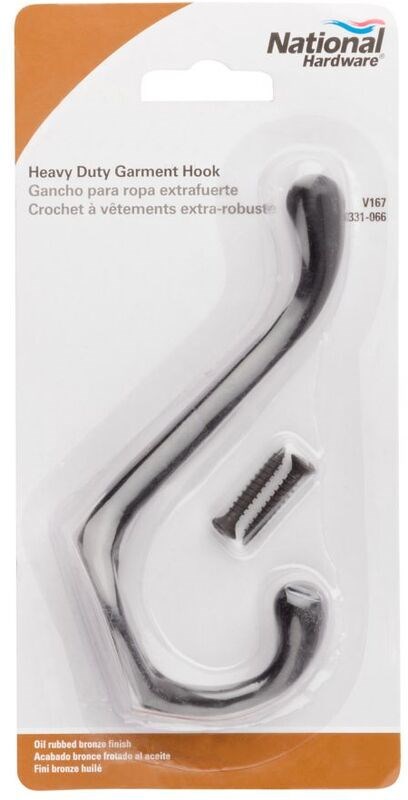 Coat & Hat Hook, Heavy Duty w/screws ~ Oil Rub'd Bronze