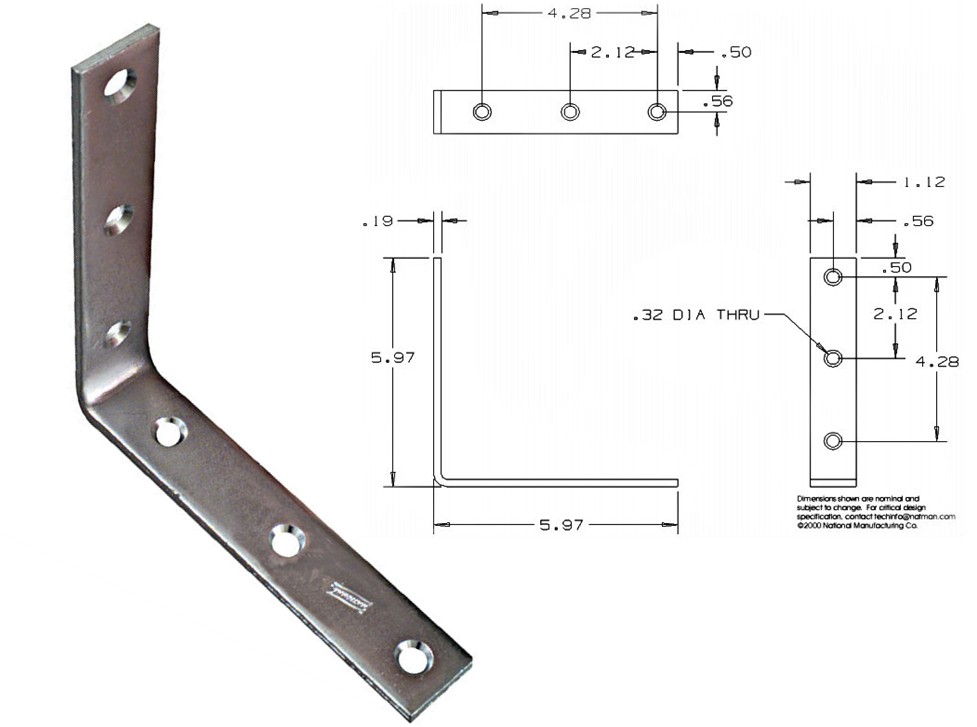 Corner Brace, Zinc ~ 6" x 1-1/8"
