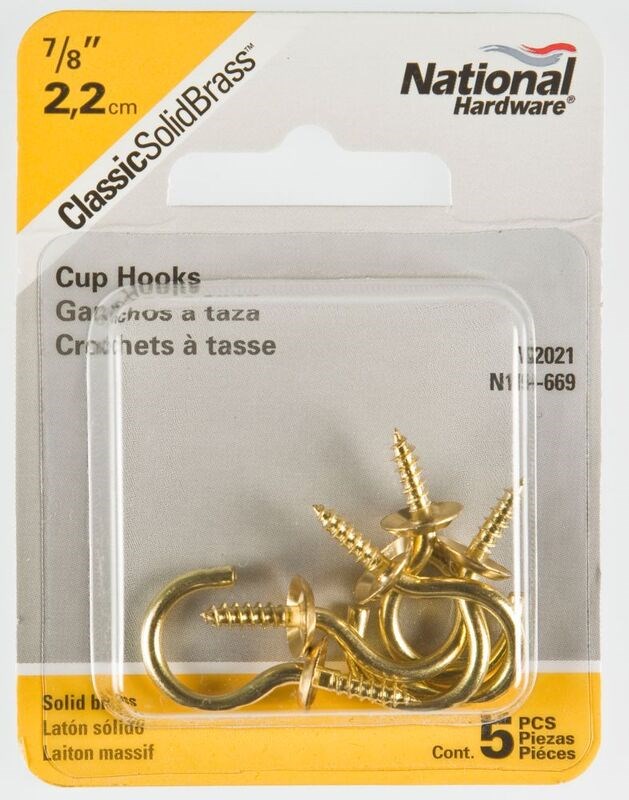 Cup Hook,  Solid Brass - 7/8" ~ Pack of 4