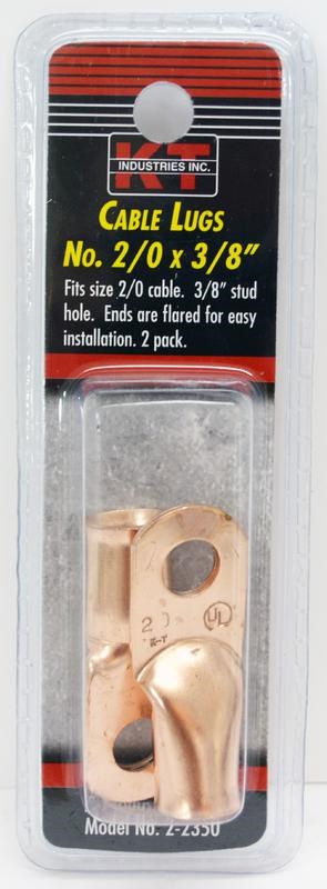K-T INDUSTRIES COPPER CABLE LUG - 2/0 AWG x 3/8" STUDThese K-T Industries cable lugs provide a reliable connection for terminating 2/0 AWG stranded copper wire to a 3/8" stud or bolt. Made from pure copper for excellent electrical conductivity and low resistance in high-amperage applications.