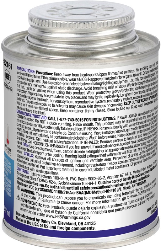 OATEY PVC BLUE LAVATORYA HOT CEMENT