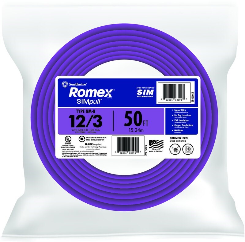 ROMEX 12/3G 25' GROUND N-M WIRE