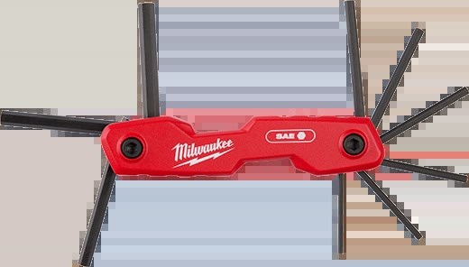 MILWAUKEE 9-KEY SAE FOLDING HEX KEY SETThis compact folding hex key set includes 9 SAE sizes with color-coded markings for quick and easy identification. The full metal body construction and 270-degree key rotation give you access to fasteners in tight spaces. Keys are made from heat-treated alloy steel with a black oxide finish and chamfered ends for easy fastener entry.