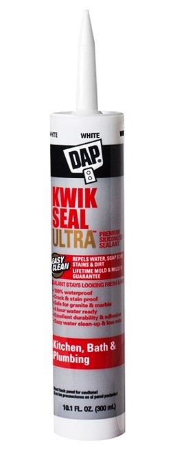 DAP® KWIK SEAL ULTRA™ is a high performance, premium siliconized kitchen and bath sealant that repels water, stains and dirt so the sealant stays looking clean, fresh and new. It has stain proof protection and is guaranteed to stay mold and mildew free for the life of the sealant.