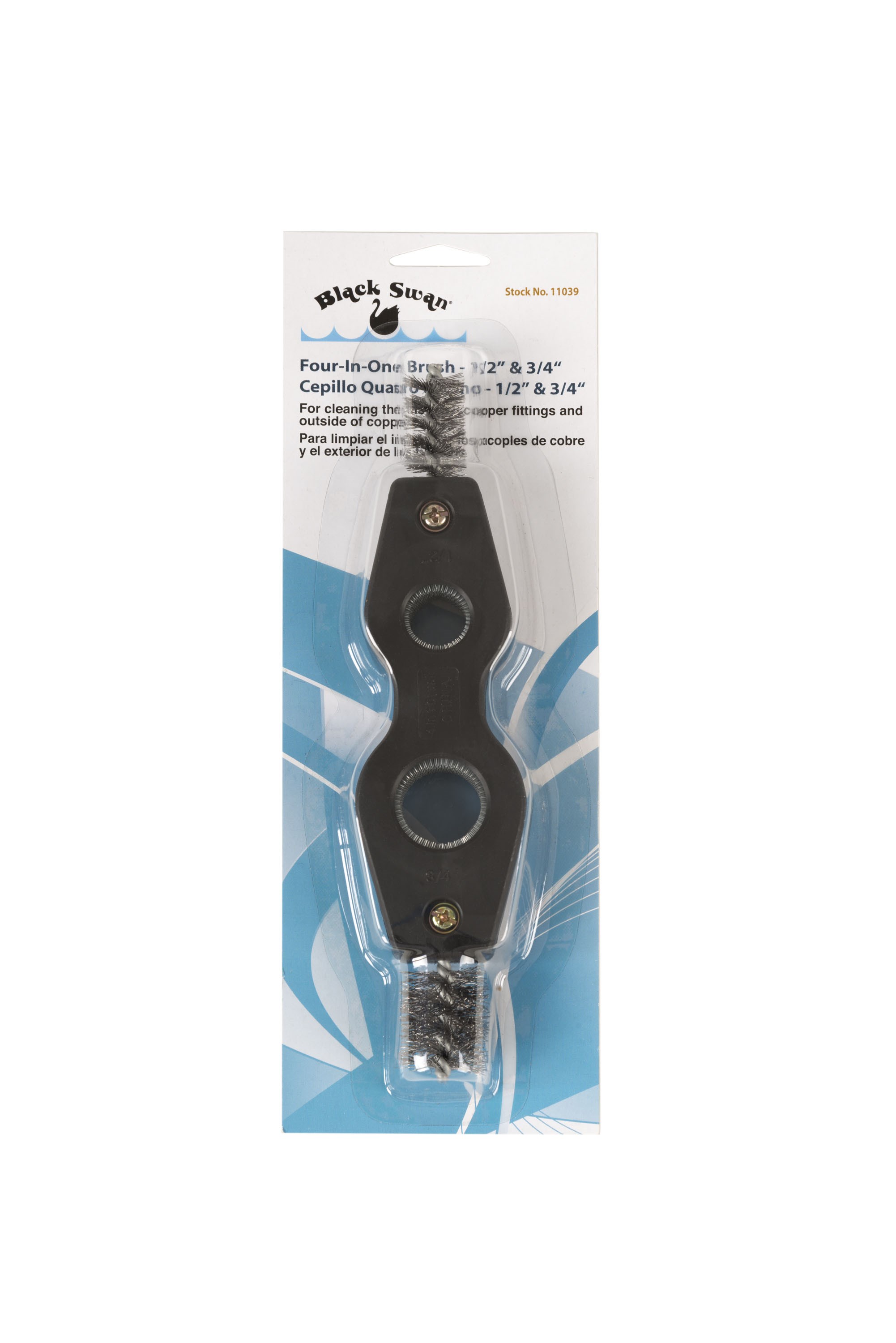 BLACK SWAN 4-IN-1 CLEANING AND FITTING BRUSHPrepare copper tubing and fittings for soldering with the Black Swan 4-in-1 Cleaning and Fitting Brush. This versatile tool cleans both the inside and outside of copper tubing and fittings in 1/2" and 3/4" sizes. Made from high carbon steel bristles housed in a durable plastic casing, it also works well for cleaning battery terminals.