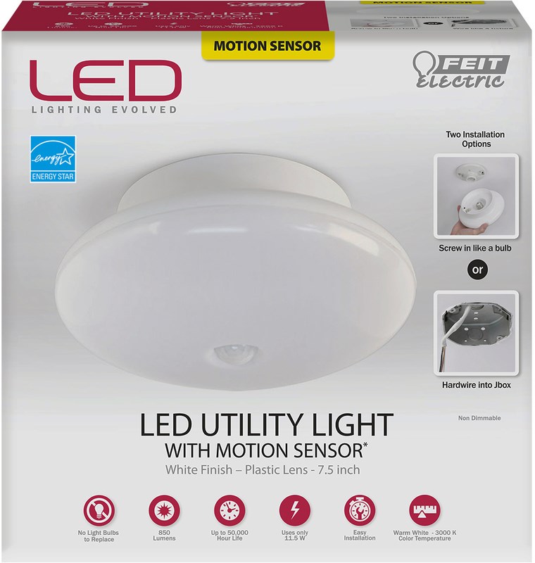 Motion Sensing LED Utility Light Fixture, White ~ 7.5"