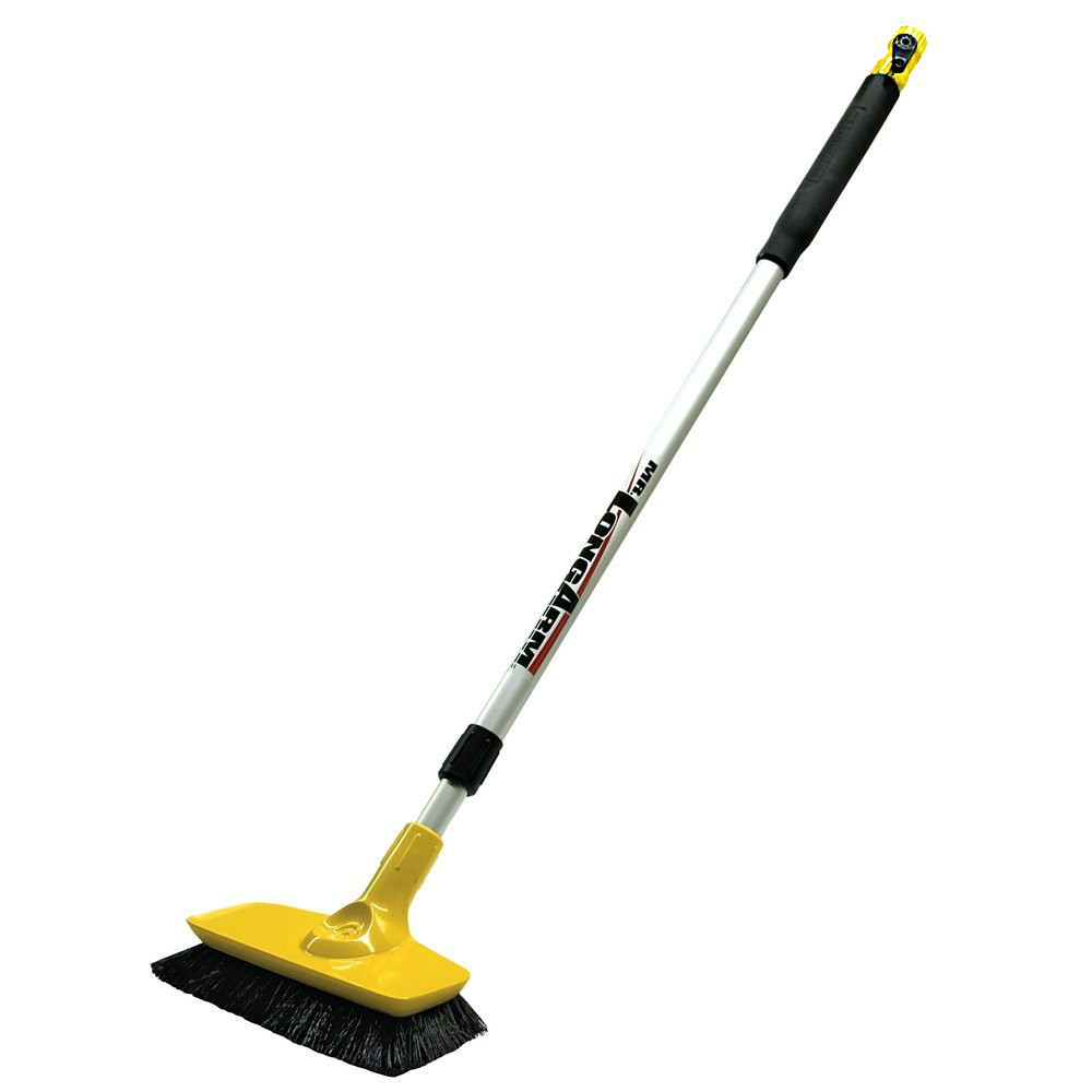 - The ergonomic brush cleans under deck rails, corners and helps push debris out of the way