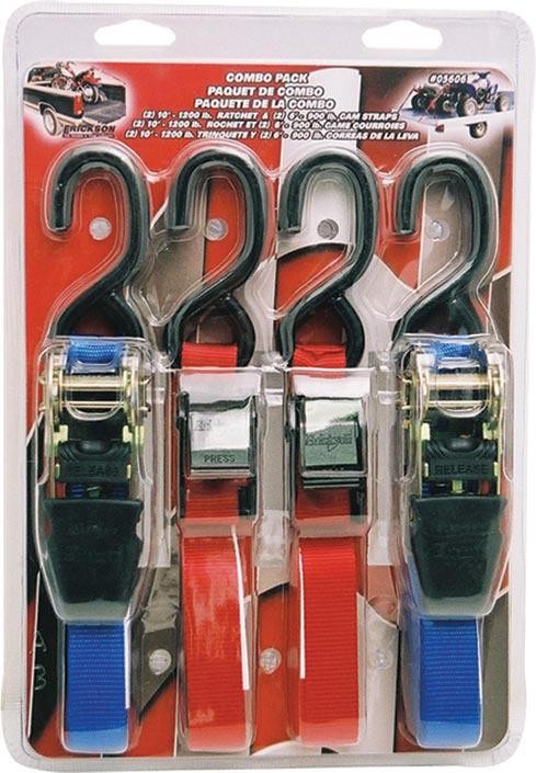 • Combo pack contains 2 each 1" x 10' 1200 lb. ratchet straps, 400 lb. SWL