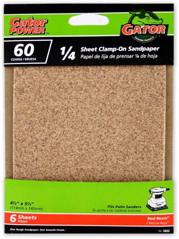 Aluminum oxide sandpaper sheets cut to fit clamp-on 1/4 sheet palm sanders