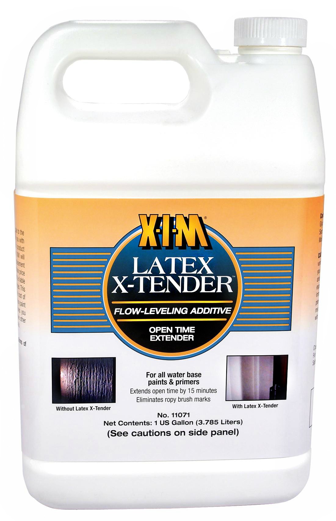 Latex X-Tender is designed to thin the viscosity of thick latex paints, primers and solid latex stains It helps application when spraying with HVLP, allowing the thick latex paints to spray smoothly without further reducing When adding XIM's Latex X-Tender there will not be reduction in flash rust control or sag control of the latex paints or primers It will not affect the paint or primer's overall cure time, but it can extend the "wet edge" or working time It will allow the thick latex formulations to flow out when brushing Latex X-Tender will improve the open time of latex, varnishes and does not yellow or cloud the varnish film.