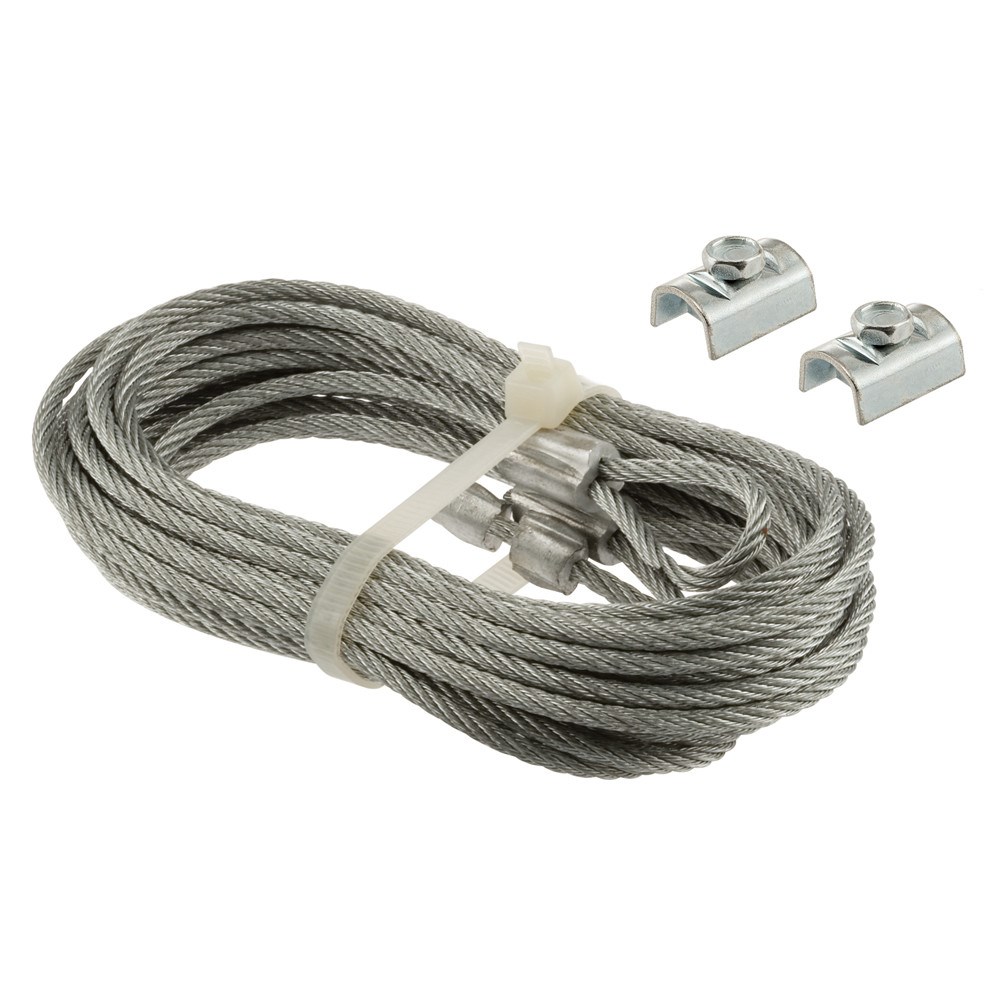 GARAGE DOOR SPRING SAFETY CABLE SET - 102" x 1/8"This Prime-Line safety cable set helps prevent injury from garage door extension springs by containing the spring in the event of a break. The galvanized carbon-steel aircraft cable installs through the center of the extension spring and is secured with included clamps. A must-have safety upgrade for any garage door with extension springs.