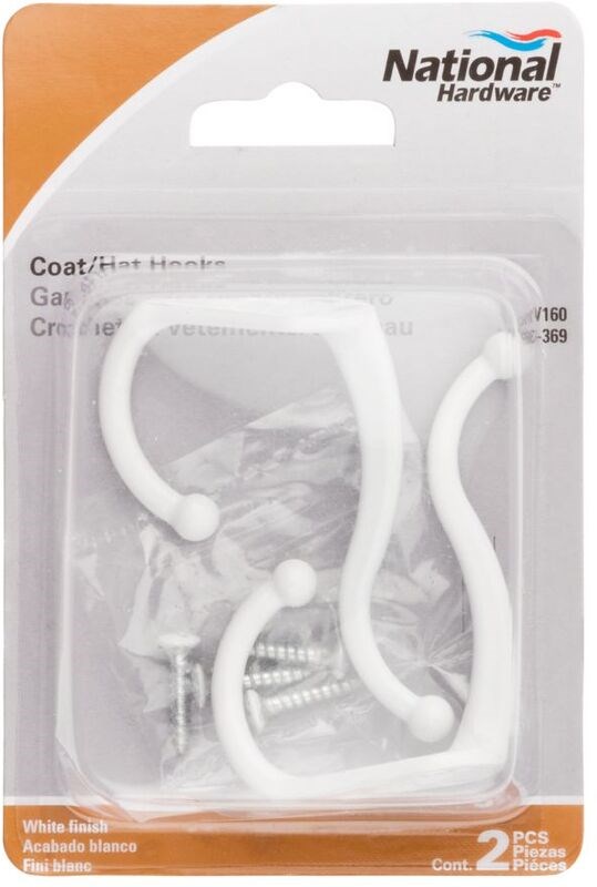 Coat & Hat Hook, White Finish ~ Set of 2