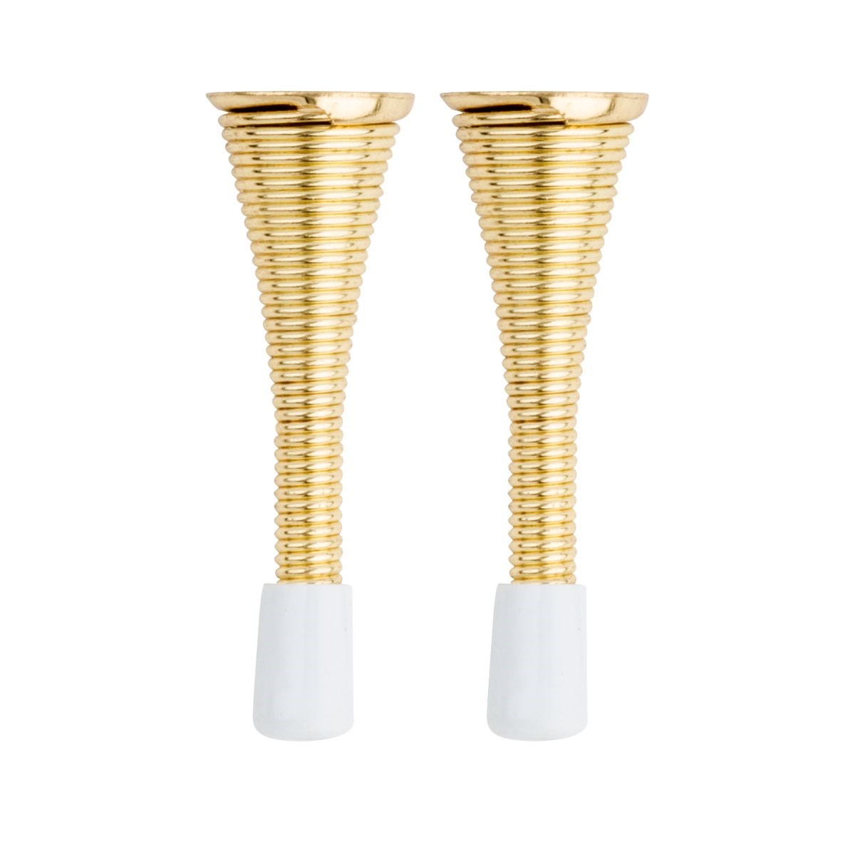 SPRING DOOR STOP, BRASS - 3"Protect your walls from door knob damage with this brass spring door stop. The 3" steel spring with plastic tip absorbs impact and prevents dents, scuffs, and holes in drywall.