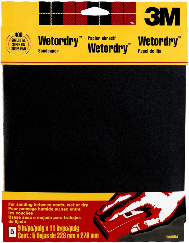 WET/DRY SILICON CARBIDE SANDPAPERPrepare walls for a coat of primer, paint or varnish with the 3M WetOrDry 400-Grit Super-Fine Sandpaper. This super-fine sandpaper is made with a synthetic mineral to provide a sharp sanding surface that cuts quickly and smoothly and can be used with water to help reduce clogging.