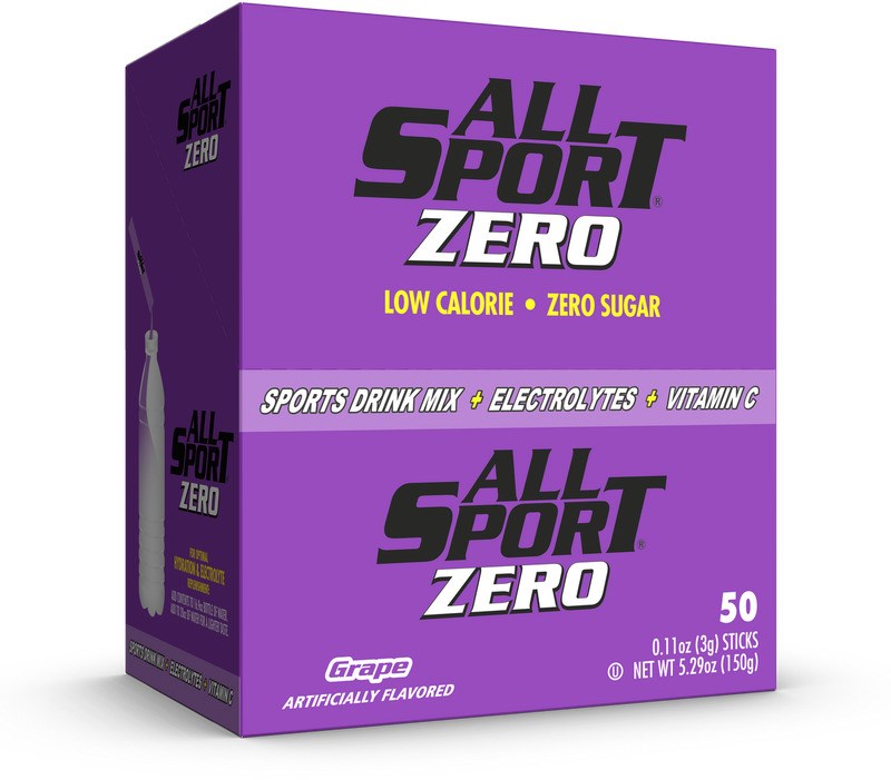 ALL SPORT ZERO POWDER HYDRATION STICKS - GRAPE, 50-PACKAll Sport Zero Powder Sticks are a zero-sugar electrolyte drink mix designed to keep you hydrated during workouts, outdoor work, and heat-stress environments. Each stick delivers 2X the potassium and half the sodium of leading sports drinks, with only 5 calories per serving.