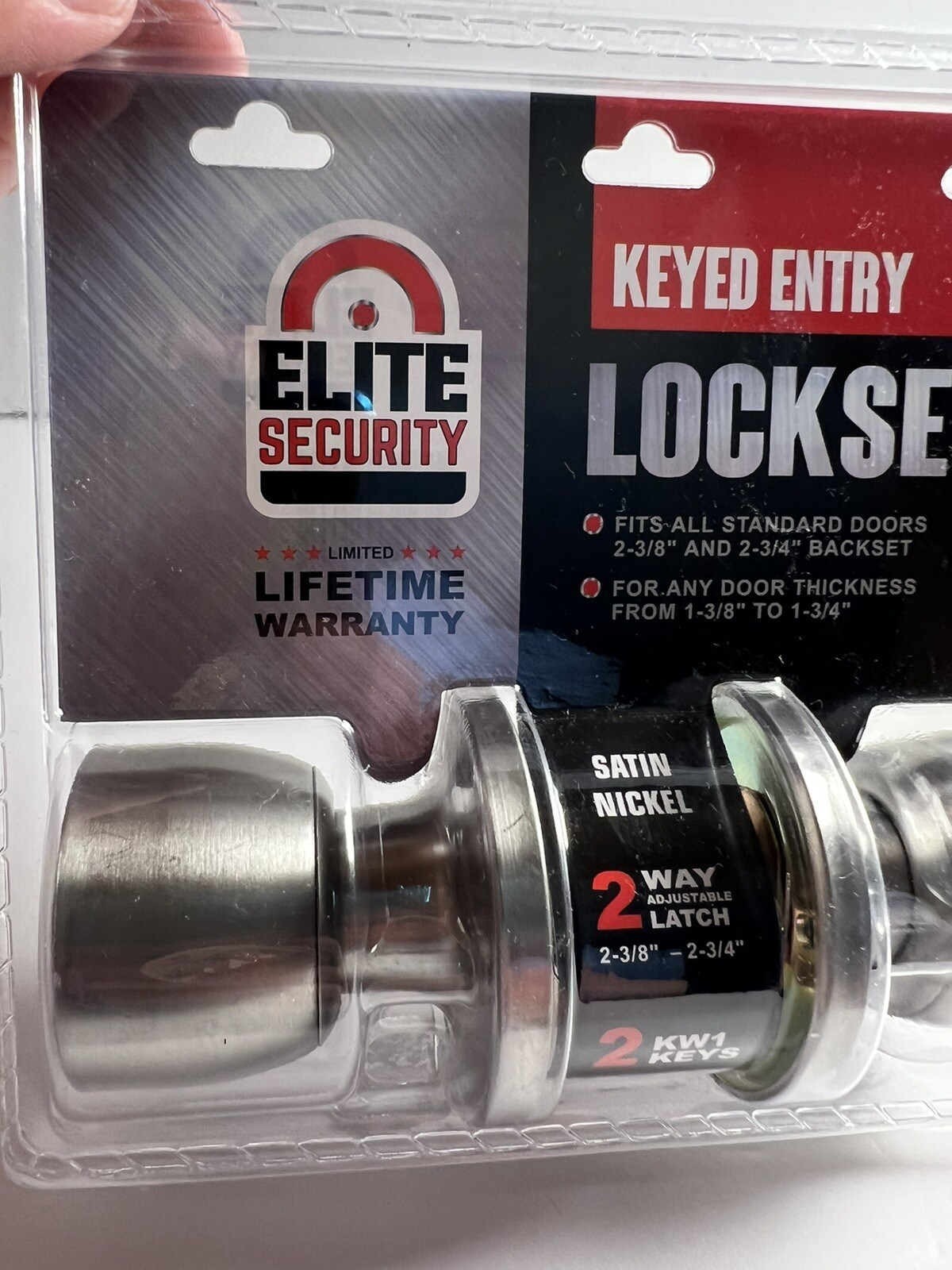 ELITE SECURITY KEYED ENTRY BALL KNOB - SATIN NICKEL, 2-PACKThis Elite Security 2-pack keyed entry ball knob set provides an affordable solution for securing interior and exterior doors. Each set includes a ball-style knob with keyed entry function, fitting standard residential doors. The satin nickel finish complements a wide range of door and hardware styles.