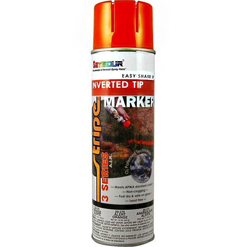 A fast drying marking paint designed to be sprayed in an inverted position. Uses a patented technology to cut the environmental impact in half (as compared to a standard solvent based marking paint). Produces vivid marks, does not clog, and is safe for grass.
