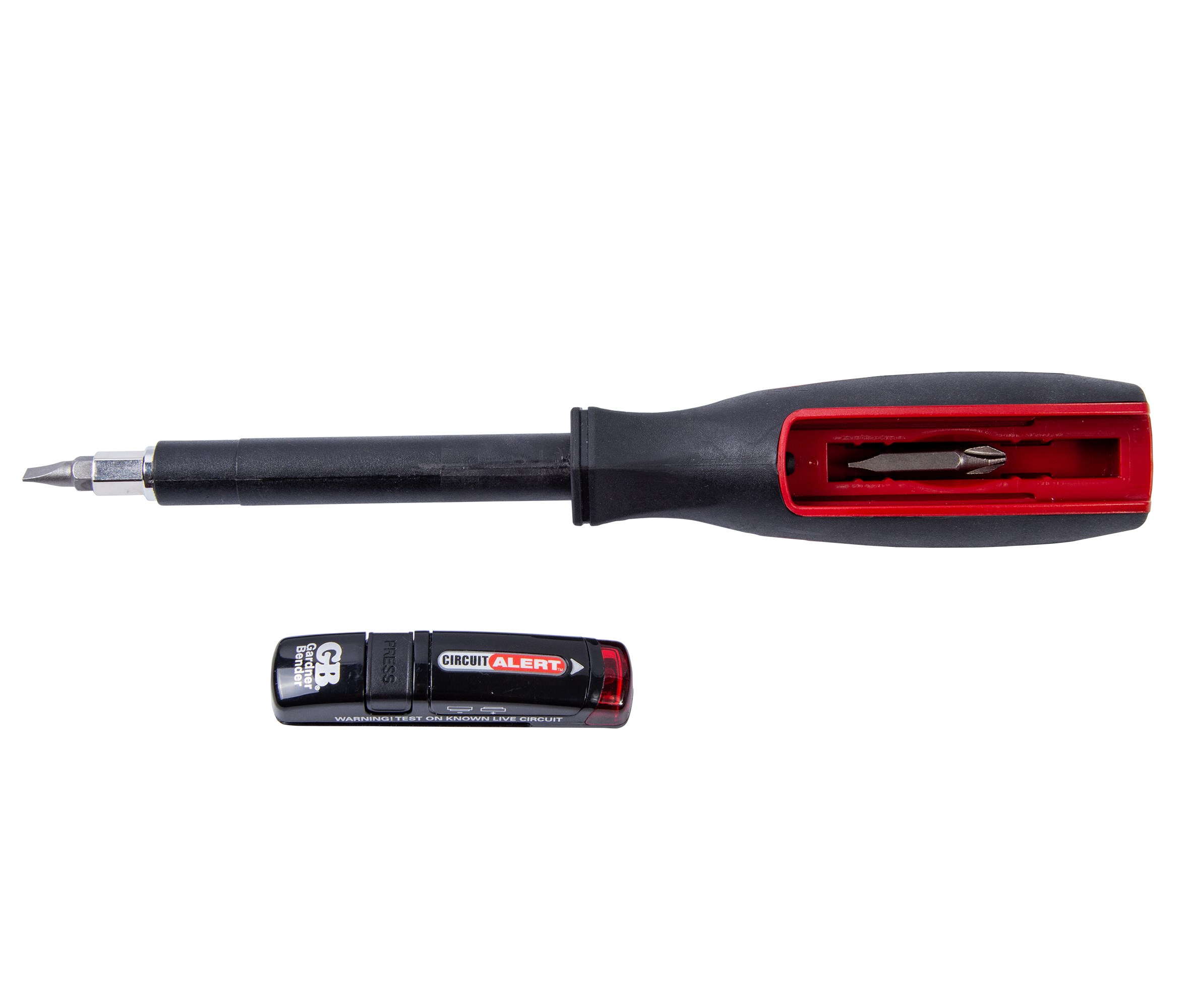 GARDNER BENDER SDT-10 CIRCUIT ALERT VOLTAGE SENSING SCREWDRIVERGardner Bender 10-in-1 screwdriver with patented Circuit Alert non-contact AC voltage detection. The snap-in sensor provides audible and visual alerts when live wires are present, making it an essential tool for electricians and DIYers.