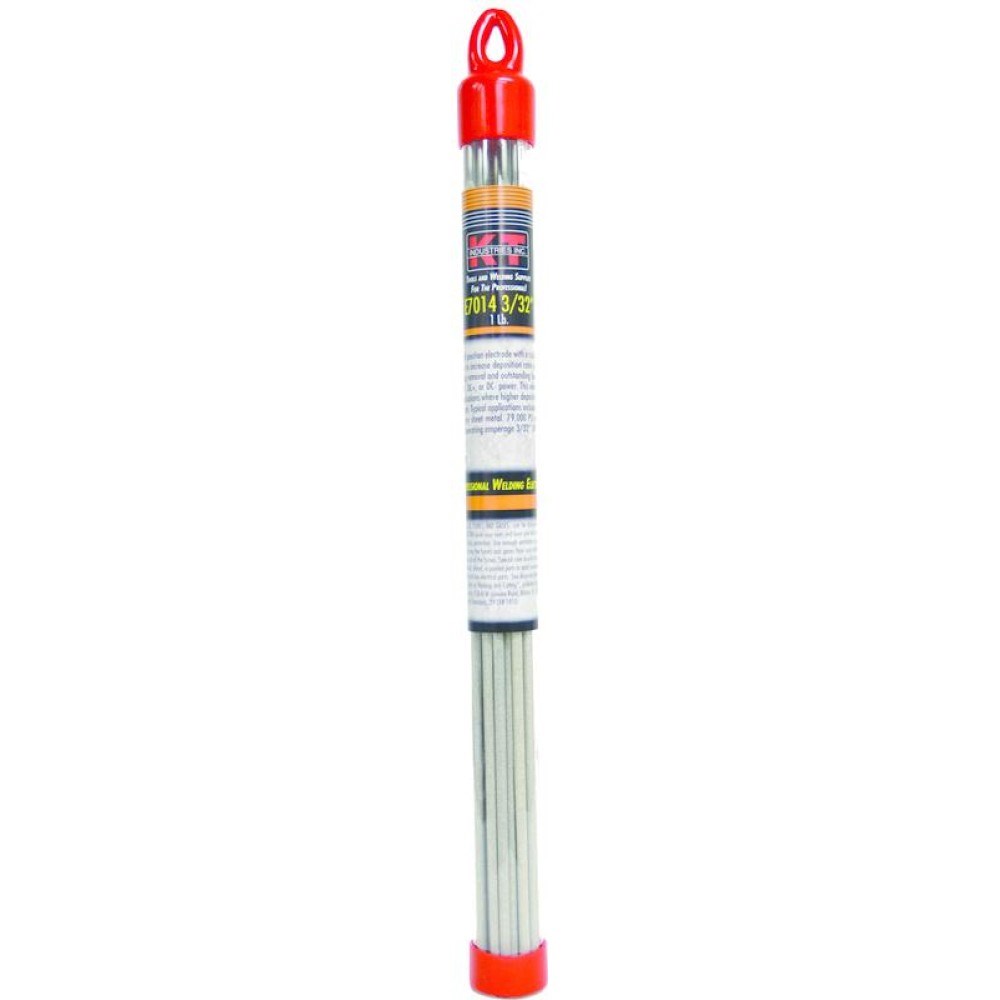 K-T INDUSTRIES 7014 WELDING ELECTRODE - 3/32", 1 LBThe K-T Industries 7014 electrode features a rutile base with iron powder coating that increases deposition rates and produces a smooth, flat weld bead with easy slag removal. Designed for AC, DC+, and DC- power sources, this versatile electrode works on low, medium, and high carbon steels.