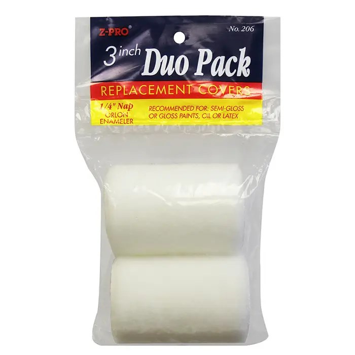 PREMIER DUO PACK DRAYLON ROLLER COVERS - 3"Premier duo pack Draylon roller covers deliver a smooth, even finish with minimal texture. The 1/4" Draylon nap provides excellent paint pickup and release for fine finishes on smooth surfaces like doors, cabinets, and trim.