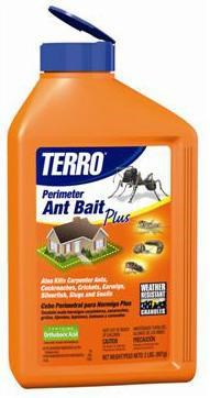 Long-lasting and weather-resistant, TERRO Perimeter Ant Bait Plus granules kills outdoor ants – including carpenter ants. The bait also eliminates cockroaches, crickets, earwigs, silverfish, slugs and snails.