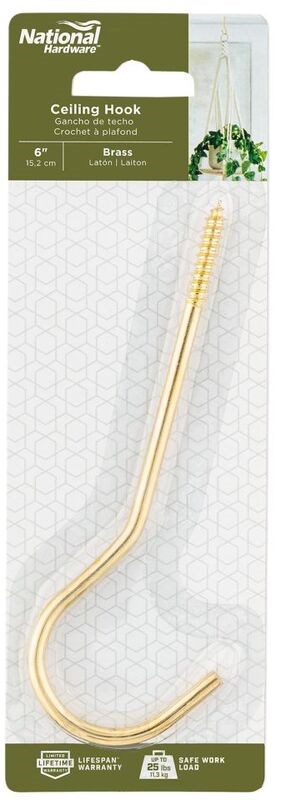 Brass Ceiling Hook, Visual Pack 2666 6 inches