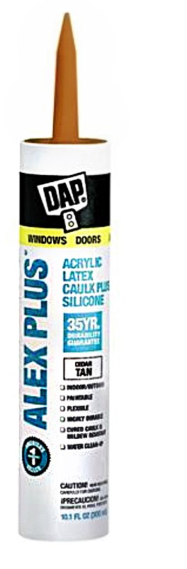 ALEX PLUS® contains silicone, which allows for excellent adhesion and flexibility to resist expansion and contraction without cracking. It provides a waterproof seal and prevents air and moisture from passing through cracks and joints thereby improving energy efficiency. Cured caulk is mildew resistant. ALEX PLUS® is paintable with latex and oil -based paints. It is easy to use, easy to tool, low in odor, cleans up easily with soap and water and has a low VOC content.
